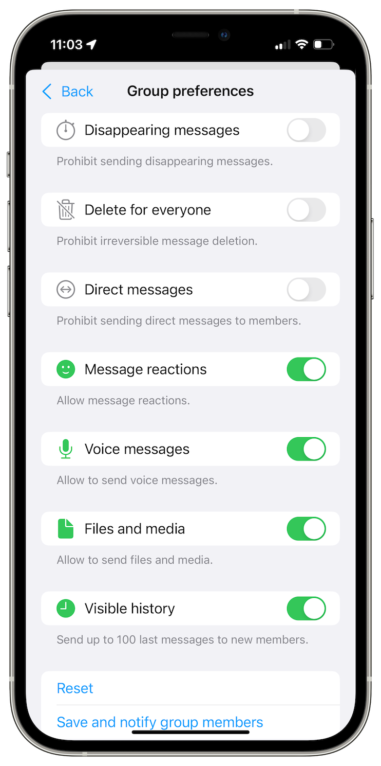 In the previous version, when users joined groups, they only saw an empty conversation, and the notifications of being connected to other members. This version allows group admins sending recent group history to the new members - this option is enabled by default for new groups, and can be enabled for the existing groups in the preferences. So now new members can join the conversation as soon as they join.